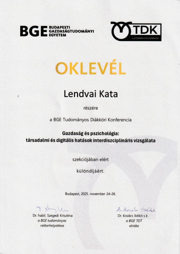Lendvai Kata részállású diákmunkásunk nagy sikert ért el az egyetemi TDK pályázaton. A Peter Cerny Alapítvány munkájáról készült dolgozata KÜLÖNDÍJBAN RÉSZESÜLT!