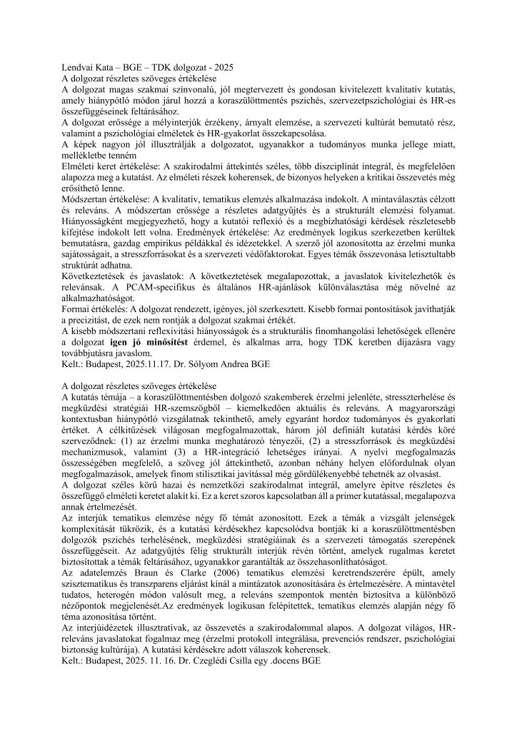 Címe: „A koraszülöttmentésben dolgozók kihívásai – Érzelmi jelenlét, stressz és megküzdés az intenzív és sürgősségi ellátásban egy HR-es szemszögéből”
